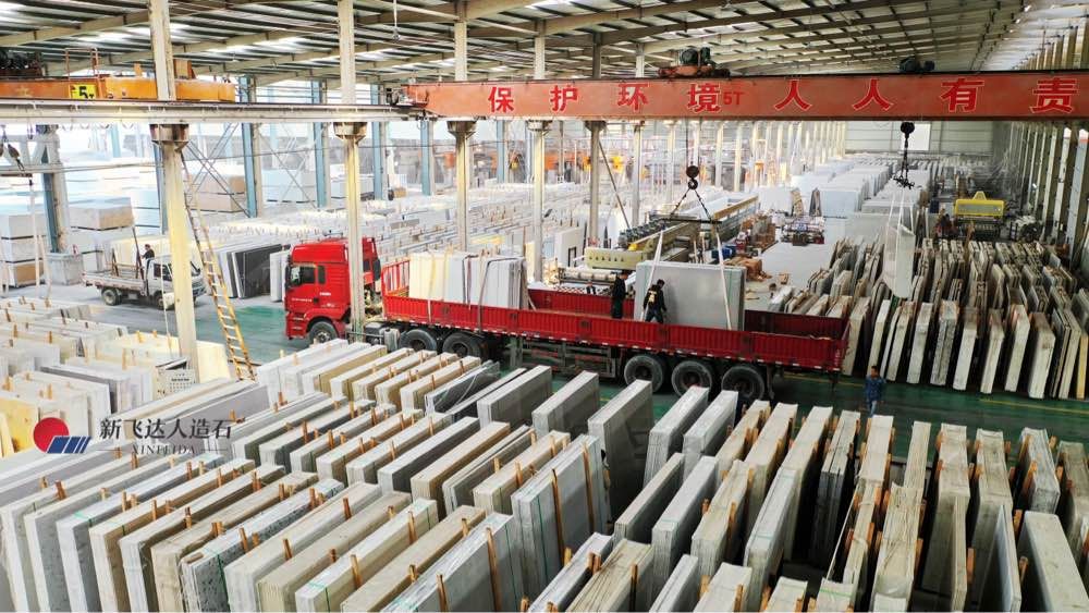 福建省南安新飛達石材有限公司,位于福建省南安市官橋鎮(zhèn)-中國石材之都,占地6萬平方米,總投資2億元,人造石細分市場下專業(yè)人造崗石、水磨石研發(fā)、設計、生產、銷售于一體的新型多元化環(huán)保企業(yè),年產量達300萬平方,年營業(yè)額均超3億元。