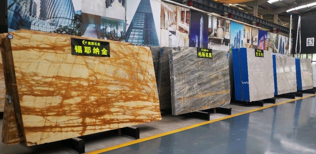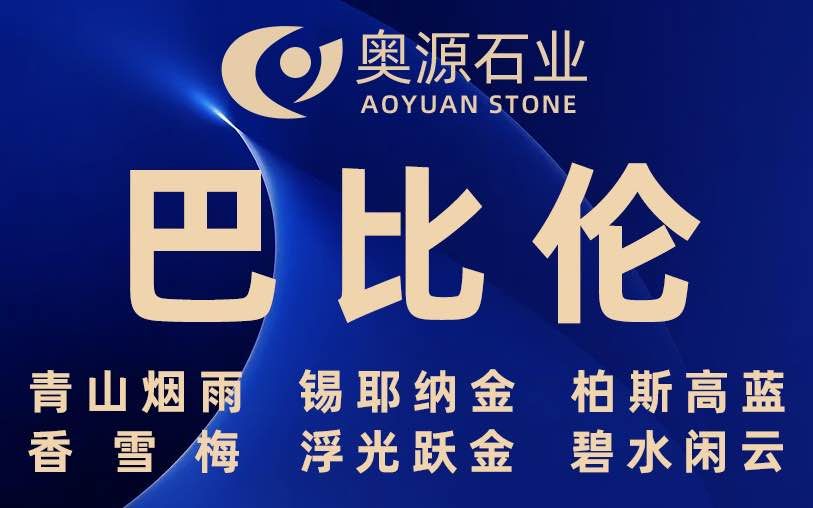 奧源主營(yíng)品種:巴比倫、青山煙雨、多佛米黃、圣地亞、星河、錫耶納金、香雪梅、貝金米黃、柏斯高藍(lán)