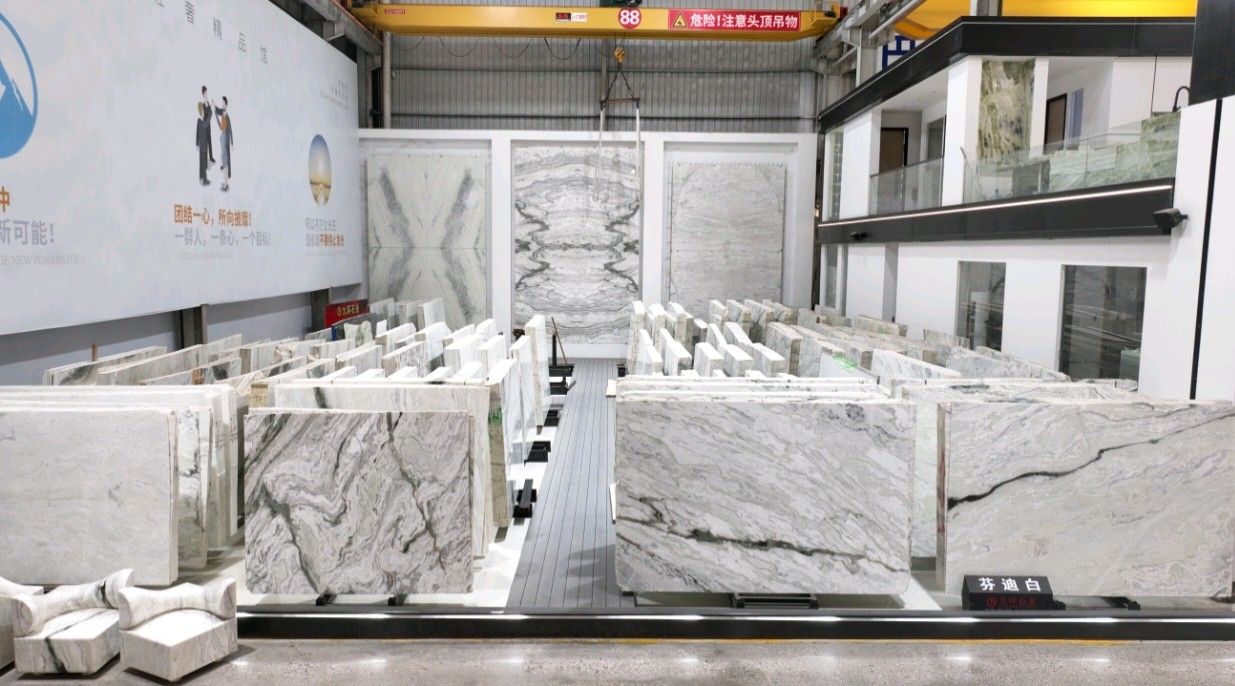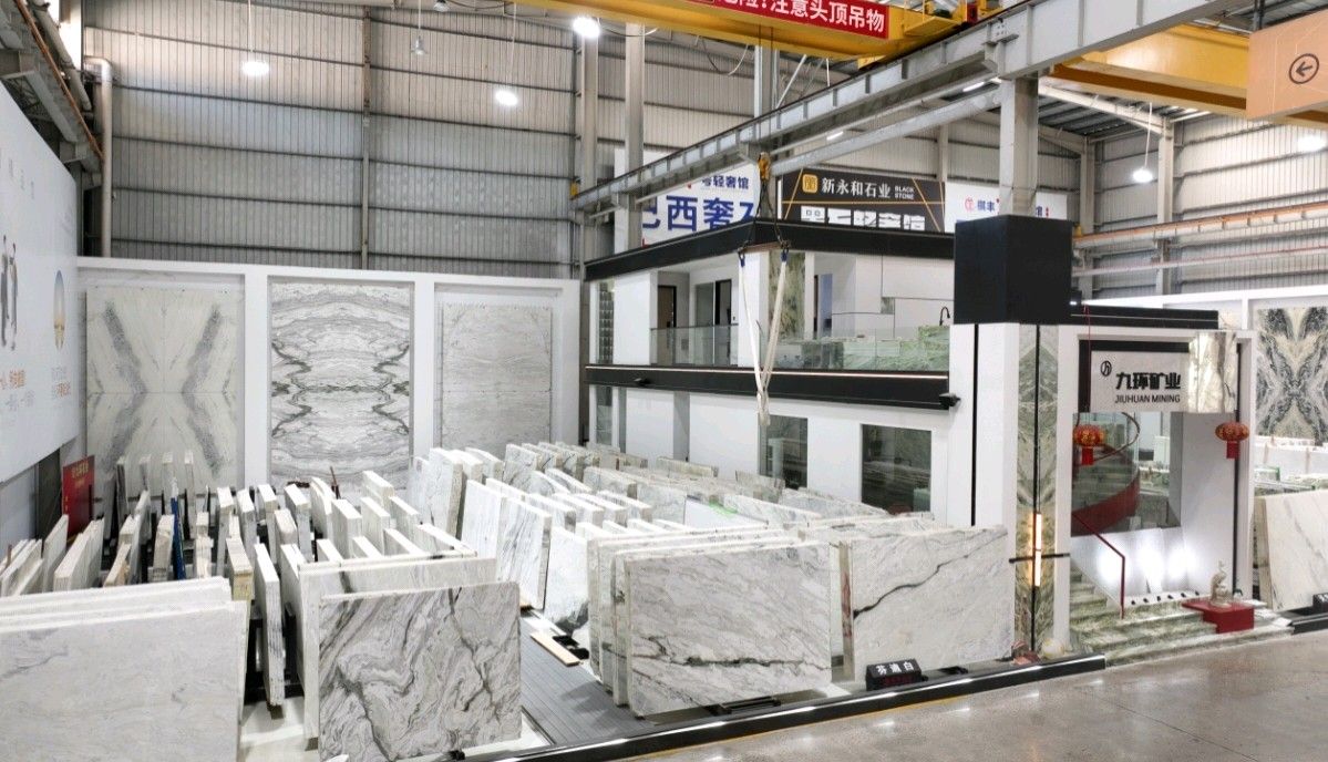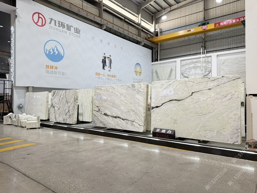 公司創(chuàng)建初期駐點(diǎn)于東升大板市場(chǎng),隨著市場(chǎng)需求,不斷進(jìn)行戰(zhàn)略布局,2016年駐點(diǎn)高時(shí)大板市場(chǎng),2017年駐點(diǎn)藝興大板市場(chǎng),同時(shí)期增加澳磊門店,2018年,九環(huán)增加遠(yuǎn)達(dá)專場(chǎng),擁有數(shù)百個(gè)架子位,憑借優(yōu)質(zhì)服務(wù)深受客戶認(rèn)可與信賴。2019年,九環(huán)于順盛增加加工點(diǎn),主要生產(chǎn)“水晶木紋”,年產(chǎn)量達(dá)15萬(wàn)平方米。該年底順勢(shì)而上,增加均利廠、新寰宇廠及振南廠三個(gè)石材加工廠,并不斷拓寬市場(chǎng)品類,由原先單一的“水晶木紋”,又增拓“印度藍(lán)金沙”與“土耳其星月白”兩個(gè)大理石品種,年產(chǎn)量接近30萬(wàn)平方米,公司經(jīng)營(yíng)得到進(jìn)一步優(yōu)化。2020年九環(huán)石業(yè)進(jìn)軍南翼點(diǎn),新增“卡索灰”及“古堡藍(lán)”兩個(gè)大理石品種,擁有自己的大型礦山開采權(quán),自主開采銷售,產(chǎn)品種類大幅度增加,業(yè)務(wù)領(lǐng)域進(jìn)一步拓展。2021年至今,九環(huán)石業(yè)新增澳盛點(diǎn),新增品種“卡地亞灰”包礦。至此,九環(huán)石業(yè)在“世界石都”水頭戰(zhàn)略版圖囊括了澳盛、新寰宇、東升、遠(yuǎn)達(dá)等駐點(diǎn),具備良好的區(qū)位優(yōu)勢(shì),發(fā)揮著重要的協(xié)同效應(yīng)。\