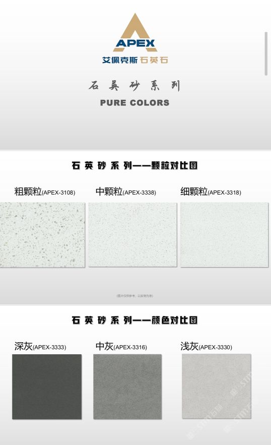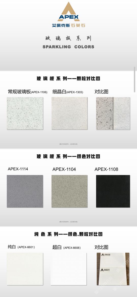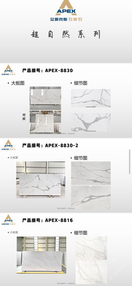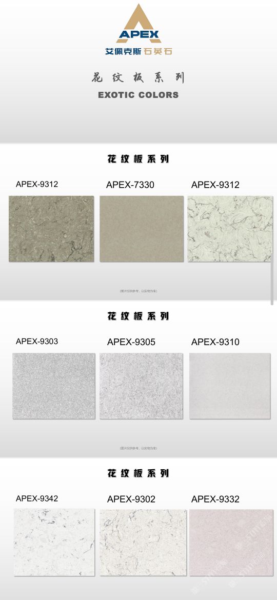 艾佩克斯秉承“精益求精”的開發(fā)理念,在人造石生產(chǎn)工藝上大膽突破,研發(fā)出更具特色的新石代石英石,色彩自然豐富,具有天然石材的質(zhì)感和美麗的表面光澤。產(chǎn)品具有刮不花、不污染、用不舊、燃不著、無(wú)輻射等五大特點(diǎn),可以廣泛用于公共建筑酒店、餐廳、銀行、醫(yī)院、展覽館、實(shí)驗(yàn)室等和家庭裝修廚房臺(tái)面、洗臉臺(tái)、廚衛(wèi)墻面、餐桌、茶幾、窗臺(tái)、門套等領(lǐng)域,是一種無(wú)放射污染、可重復(fù)利用環(huán)保、綠色新型建筑室內(nèi)裝飾材料。是的裝飾裝修材料。