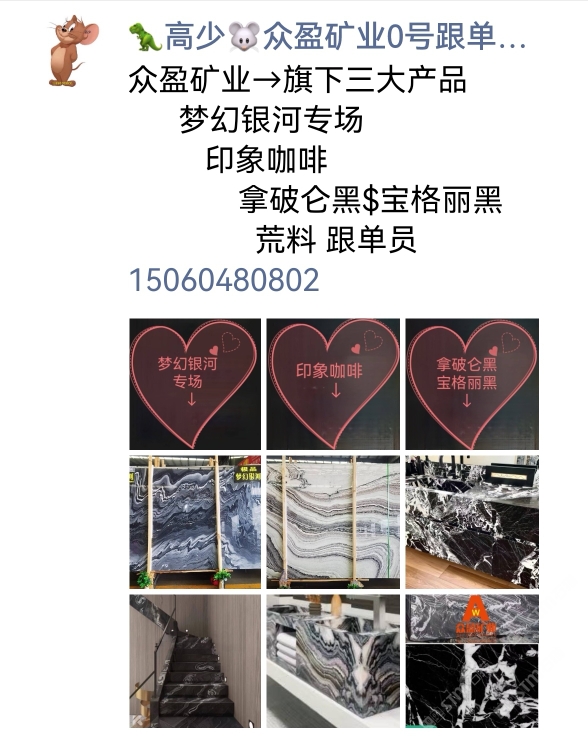 眾盈礦業(yè)主營:夢幻銀河專場,、新品意大利黑白(寶格麗黑/拿破侖黑)、新品→印象咖啡(紫山水),潘多拉,宇宙灰(鮑魚石)