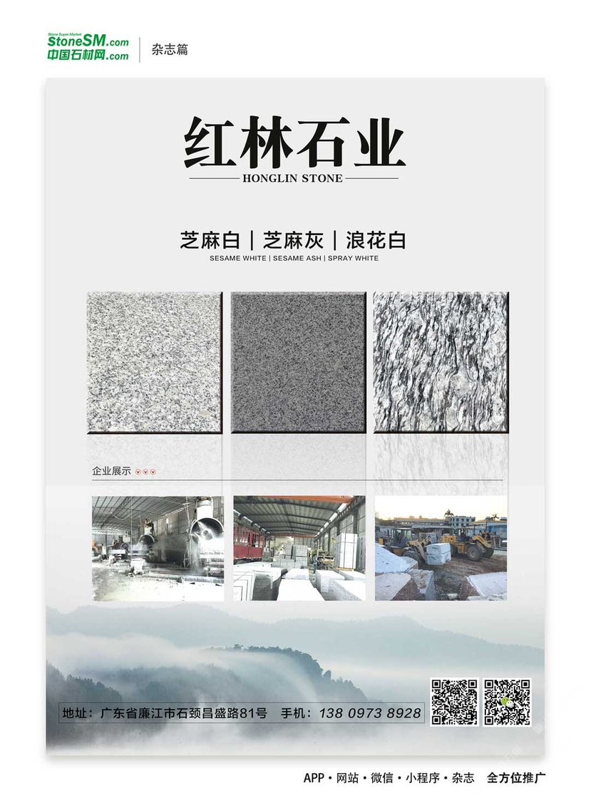 紅林石材廠位于廣東省廉江市石材工業(yè)園區(qū),擁用大型礦山資源,主要出產(chǎn)國(guó)內(nèi)知名品種如工:芝麻白、海浪花、芝麻灰,楓葉紅等花崗巖石材,我廠主要做各種規(guī)格臺(tái)板、地板磚、荒料石、石材加工、風(fēng)景石、園林石、觀賞石、招牌石、門(mén)牌石、陽(yáng)臺(tái)花瓶、欄桿、風(fēng)水球、石桌石凳等工藝加工及別墅精裝設(shè)計(jì)。另外可根據(jù)用戶需要進(jìn)行各種異形材加工,產(chǎn)品銷(xiāo)往全國(guó)各地。本廠具有長(zhǎng)期加工經(jīng)驗(yàn),質(zhì)量可靠。公司秉承“以誠(chéng)信為根本,以質(zhì)量為生存”的經(jīng)營(yíng)理念,堅(jiān)持“客戶、互惠互利”的原則為廣大客戶提供優(yōu)質(zhì)的服務(wù)。歡迎廣大的新老用戶,前來(lái)洽談合作!
