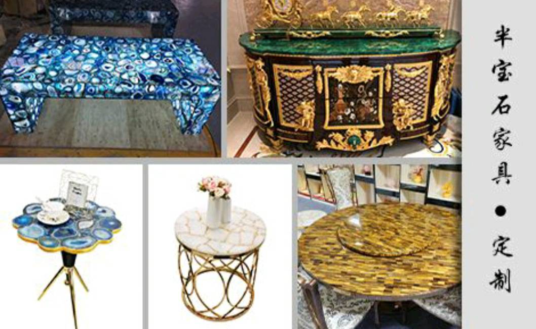 專業(yè)生產(chǎn)純天然高檔半寶石:虎眼石,瑪瑙石,水晶石,孔雀石,景泰藍(lán), 木化石,珍珠母貝馬賽克,寶石貝殼,應(yīng)用于酒店家具的各類半寶石。具有無(wú)輻射,無(wú)污染,純天然,不退色,不變色,防水防火等特色,符合現(xiàn)代裝飾的綠色環(huán)保需求。超凡的工藝及設(shè)計(jì),被廣泛運(yùn)用于各類中高檔個(gè)性化裝修以及家具臺(tái)面,家居配飾,工藝品擺件等等。\