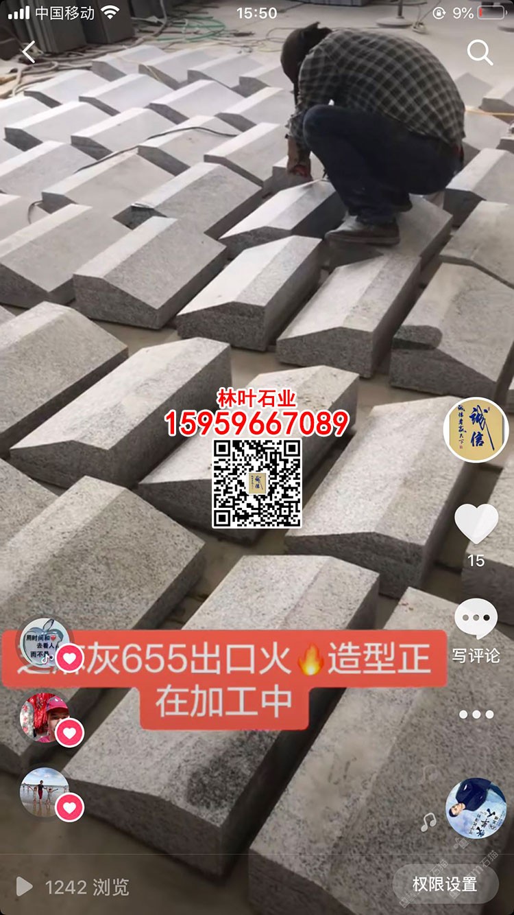 林葉石業(yè)長泰工廠(林總15959667089微信同號)專業(yè)老礦芝麻黑與芝麻灰供應(yīng)商,專注于出口及高品質(zhì)工程國內(nèi)外園林景觀石材;主營:老礦芝麻黑墓碑石、正礦吳田山G654窗臺板、G654芝麻黑牛鼻子、芝麻黑石材游泳池蓋板、老礦芝麻黑出口高品質(zhì)工程板、老礦654小方塊馬蹄石、芝麻灰G655路沿石、深灰麻石材、中灰麻石材、深灰色花崗巖、黑色麻石等光面、燒面、荔枝面、墓碑石材、地鋪石材、園林景觀工程、路沿石材等;林葉石業(yè)寧德工廠(葉總18050650127微信同號)專業(yè)新礦芝麻黑寧德小藍(lán)寶,廠礦一體,體格優(yōu)惠,真誠希望您的光臨與合作!(聲明上傳產(chǎn)品圖片均是本廠加工生產(chǎn))
