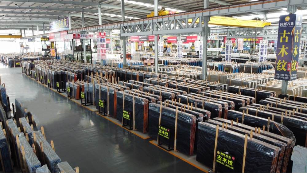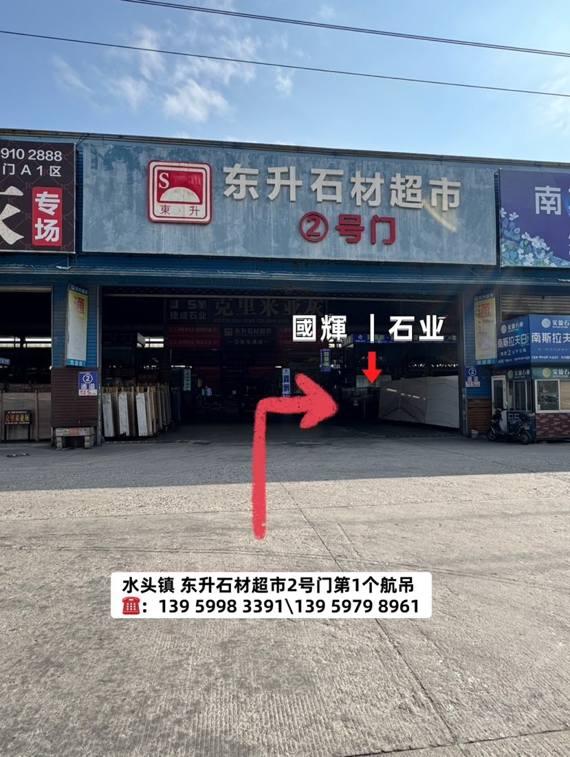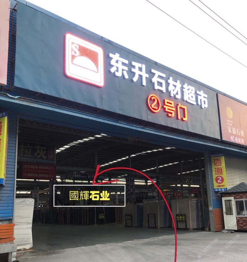 中國(guó)福建南安水頭鎮(zhèn)東升石材超市二號(hào)通道第一個(gè)行吊國(guó)輝石業(yè)
