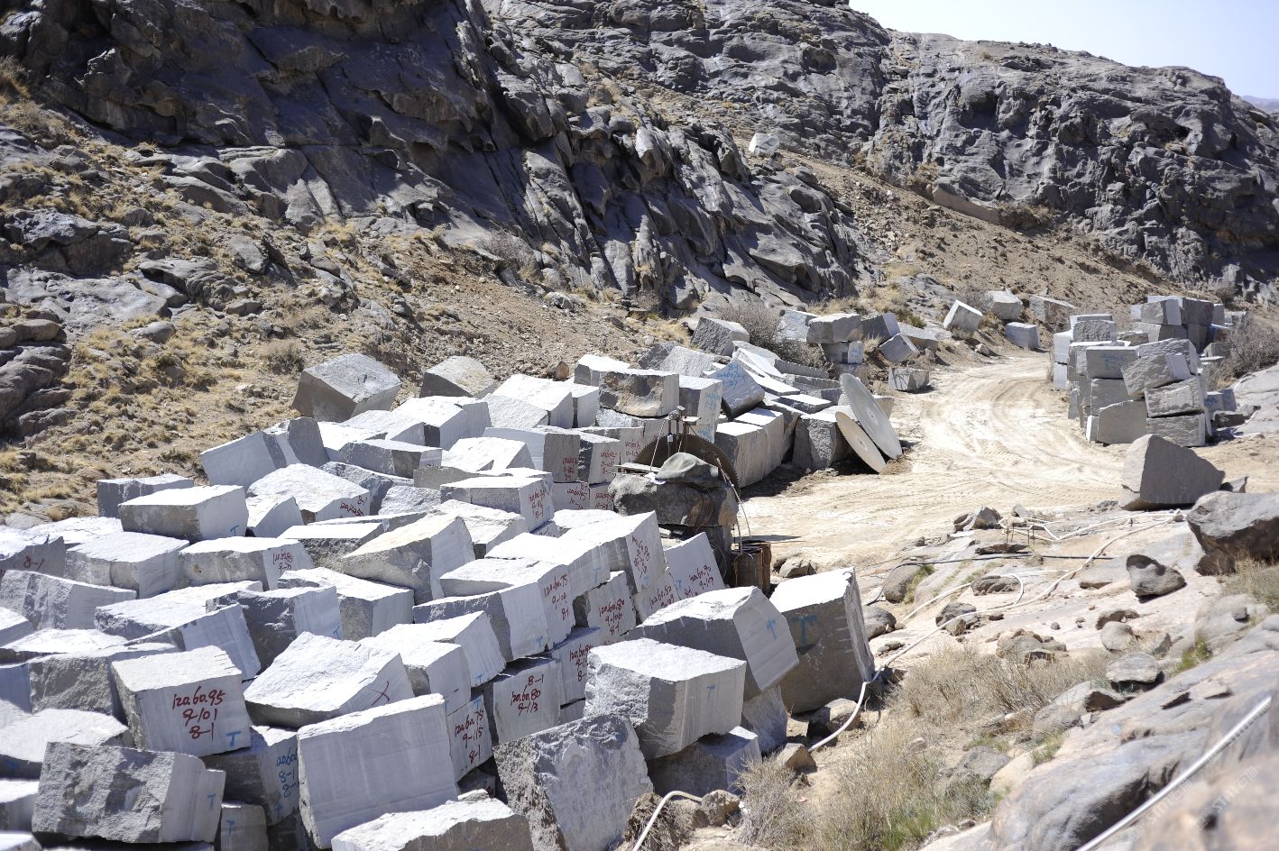 新疆煒通石材工貿(mào)有限責(zé)任公司成立于2007年,是一家集礦山開采、板材加工為一體的石材公司。公司擁有的奧莫爾塔格礦山位于哈密市東北方向,直線距離約160千米,礦區(qū)面積1.25平方千米,資源儲(chǔ)量約800萬立方米。礦山擁有一批優(yōu)秀的管理人員、技術(shù)精湛的開采隊(duì)伍和先進(jìn)的機(jī)械設(shè)備,現(xiàn)有柴油發(fā)電機(jī)組8臺(tái),濕式切石機(jī)6臺(tái),滿負(fù)荷生產(chǎn)規(guī)劃為每年5萬立方米。