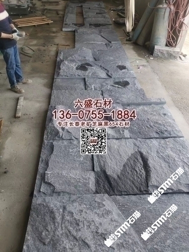 G654石材芝麻黑花崗巖蘑菇石外墻干掛文化石凹凸面