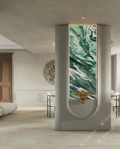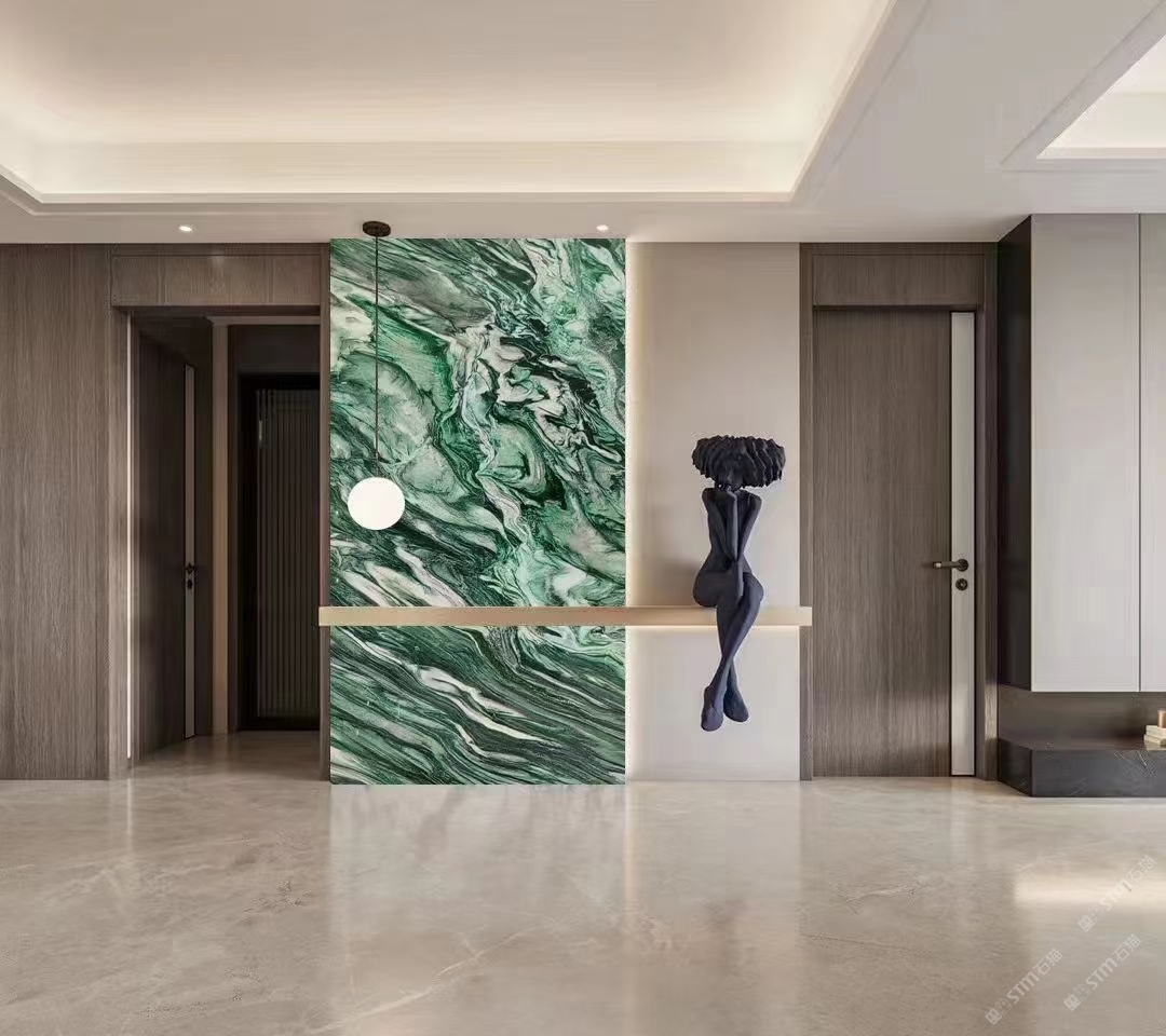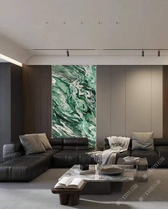 發(fā)布信息: 佰達(dá)奢石「挪威綠」 編號(hào): BD-22097 規(guī)格:2700x1550x18mm 「挪威綠」象征著生命力的綠色為基底,純潔的白色水晶和黑色紋理穿插其中,看上去像一副油畫一般,具有很強(qiáng)的視覺沖擊感,藝術(shù)氣息濃厚,不論是作為桌面還是玄關(guān),都能給溫暖的家增添色彩,盡顯,奢華。
