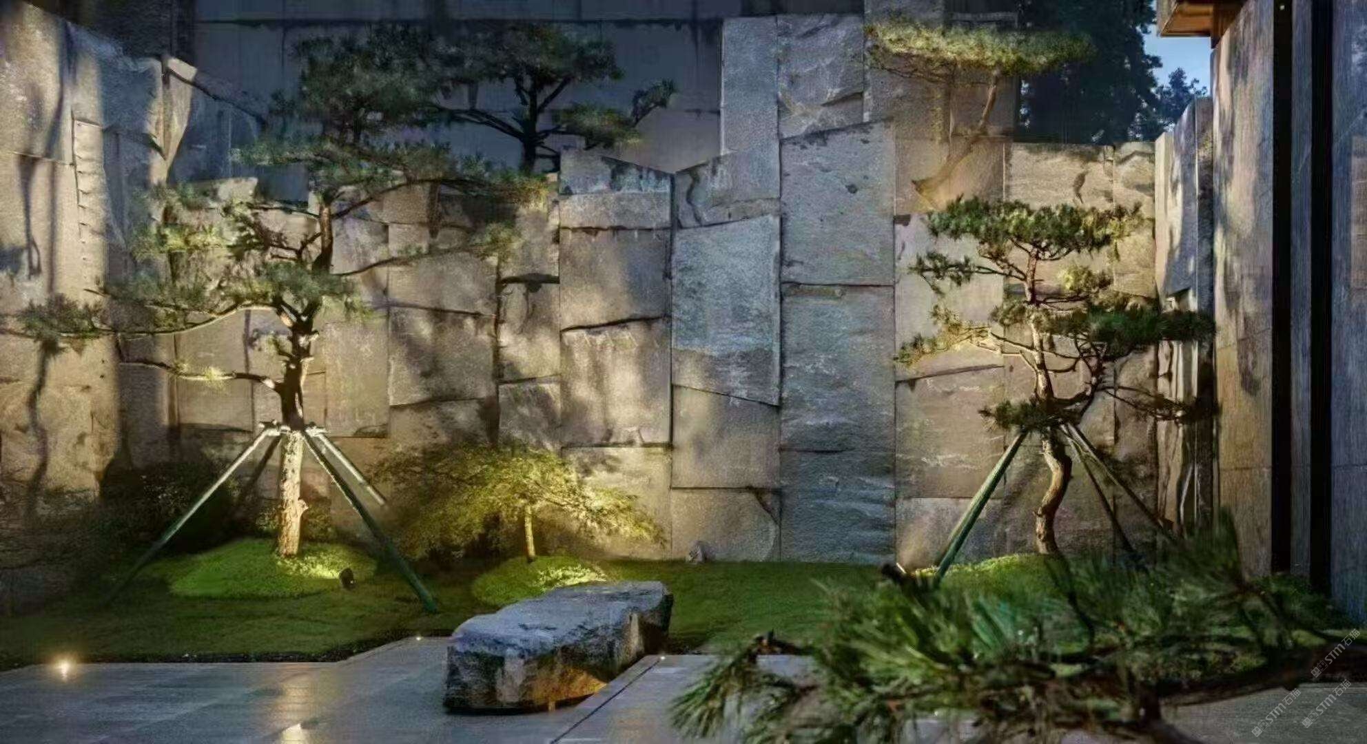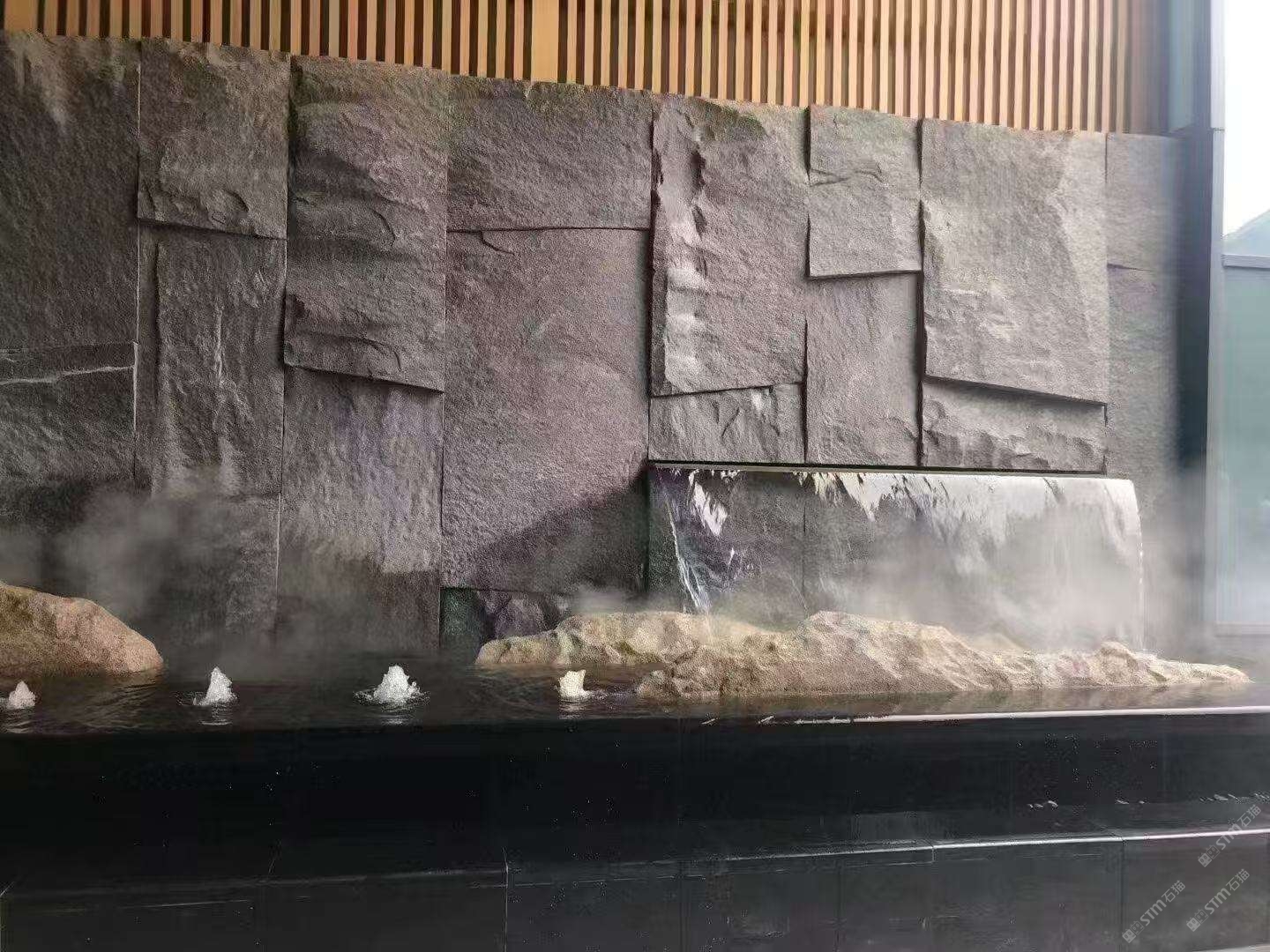 章丘黑魯灰石材自然面背景墻