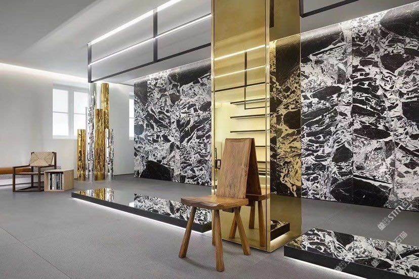 發(fā)布信息: 拿破侖黑純粹高檔的黑色板面,纖美的銀白紋理交織流動(dòng),無(wú)限連紋的拿破侖黑,橫向與縱向均能隨意拼接,紋理自然銜接,讓花紋得到無(wú)限延伸,描繪波瀾壯闊的奔騰之勢(shì),似浩瀚洶涌的海浪,構(gòu)成奇妙的視覺(jué)吸引力