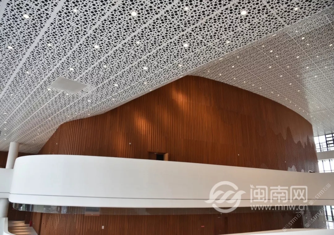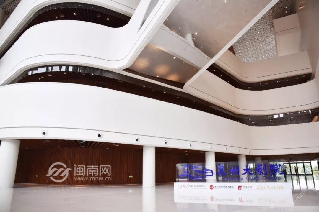 發(fā)布信息: 泉州大劇院整體設(shè)計猶如市花“刺桐花”的泉州市公共文化中心,環(huán)灣面海,欣欣向榮。公共文化中心位于東海片區(qū)山海中軸線中段,毗鄰泉州市政府,四大主體文化場館泉州科技與規(guī)劃館、東海工人文化宮、泉州大劇院、泉州圖書館一起成為“亞洲多元文化發(fā)展中心”。自2015年8月項目啟動建設(shè)以來,倍受泉州市民關(guān)注,這里將成為文化新家園。 “四朵花瓣”之一的泉州大劇院即將于2019年6月30日率先揭幕。 18日上午, 泉州大劇院舉行了 開幕演出季新聞發(fā)布會。 坐落于東海的泉州市公共文化中心 “四朵花瓣”之一的“海絲之花” 率先揭開了神秘面紗。 室內(nèi)設(shè)計延續(xù)外立面元素, 抽取海洋元素疊浪與海面波光等為設(shè)計意向, 水平向的穿孔鋁板像絲綢一般輕盈通透, 表達出舞蹈的節(jié)奏與音樂的韻律, 也體現(xiàn)出泉州作為“海上絲綢之路”起點城市的文化特點?!昂=z樂章”為設(shè)計主題, 建筑外立面設(shè)計采用雙層表皮結(jié)構(gòu), 內(nèi)層為玻璃幕墻,外層為金屬穿孔鋁板表皮, 水平方向的波浪形曲線設(shè)計室內(nèi)設(shè)計延續(xù)外立面元素, 抽取海洋元素疊浪與海面波光等為設(shè)計意向, 水平向的穿孔鋁板像絲綢一般輕盈通透, 表達出舞蹈的節(jié)奏與音樂的韻律, 也體現(xiàn)出泉州作為“海上絲綢之路”起點城市的文化特點。