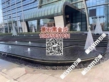 印度黑金沙石材園林水池水景工程造景石材戶外水景工程