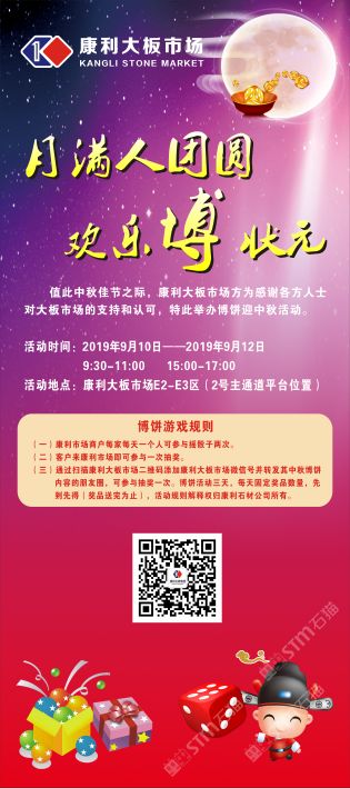 發(fā)布信息: 『月滿人團圓,歡樂博狀元』?? 值此中秋佳節(jié)之際,康利大板市場“全民參與,豪禮送不?!被顒蛹磳㈤_始,敬請期待!識別圖中微信二維碼添加可了解活動詳情!