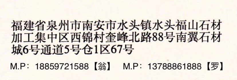 銀貝殼石業(yè) 聯(lián)系人:翁先生    152****9685 查看 手機(jī)號碼:無 主營范圍: 大板批發(fā)、荒料、大理石加工、礦山、 企業(yè)地址:福建泉州水頭鎮(zhèn)南翼6通道5號倉