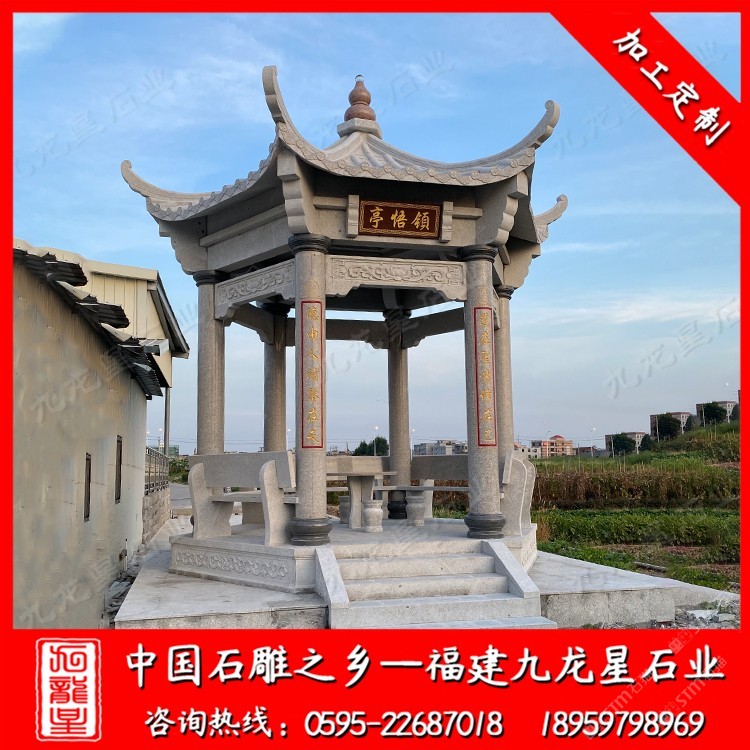 發(fā)布信息: 大理石涼亭廠家選九龍星石業(yè)18959798969。九龍星石業(yè)從事石雕行業(yè)二十多年,常年批發(fā)石雕涼亭、石亭子,款式多樣,價格合理,工期快。 石雕涼亭我們也成它為石材涼亭、石頭涼亭、石亭子。石雕涼亭樣式很多九龍星石業(yè)小編總結大概可以分為兩種:仿古中式石雕涼亭和簡約歐式風格石雕涼亭。 石雕涼亭廠家在加工制作時選用的材料多為大理石、芝麻黑、芝麻白、本山石等石料。 “亭”與停同音,停留也,人們休憩的場所。涼亭在我國古代已經存在。周代時期,那時候人們建造涼亭是在邊防要塞地區(qū),以小堡壘的形式。到魏晉南北朝時期,建造為休憩的亭子,也是大約從這時候涼亭做為一處休憩的場所走進人們的生活。