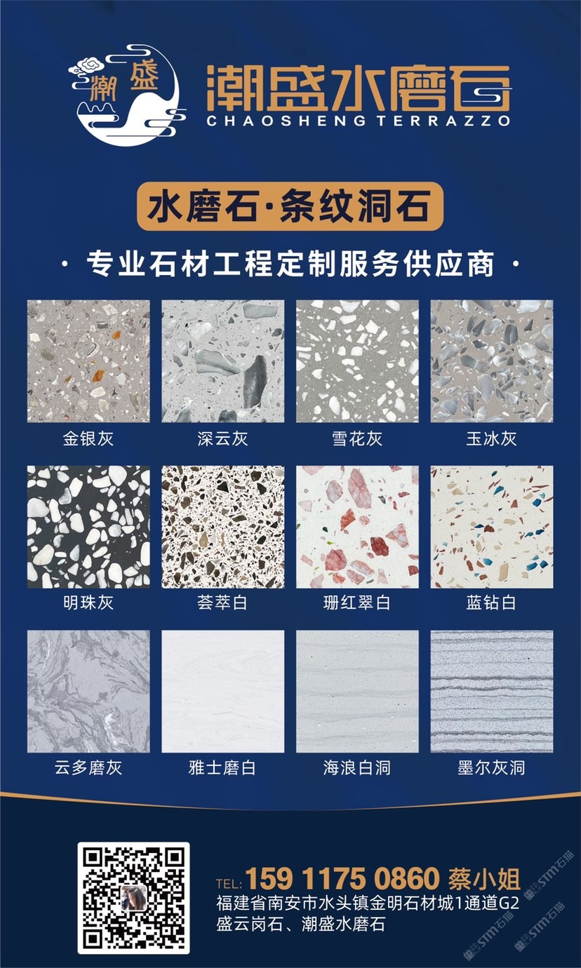 發(fā)布信息: 潮盛水磨石???????????? ① 無樹脂、天然花色 ② 可定制任意款式 ③ 來板仿樣2~3天完成 ④ 生產(chǎn)、銷售、加工一體化 歡迎來電:15911750860