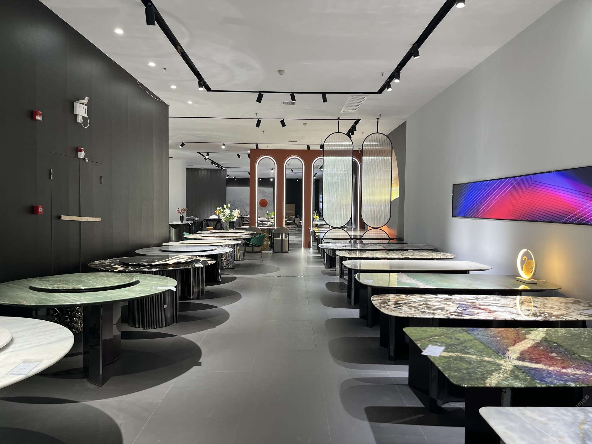 實木結(jié)合五金奢石餐桌:藍(lán)水晶長桌#水頭奢石家居中心