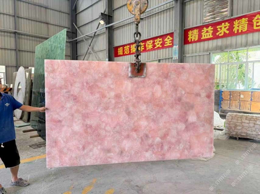 批發(fā)定制粉水晶大板,透光石材,半寶石板材