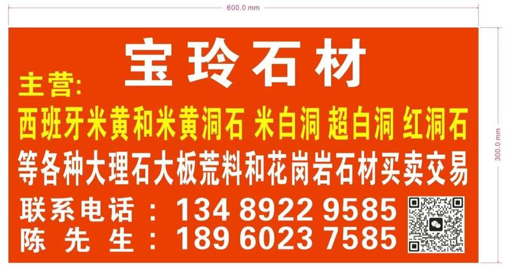 寶玲石材 聯(lián)系人:陳先生    134****9585 查看 134****9585 查看 主營范圍: 大板批發(fā)、荒料、大理石加工、石材工藝品、更多、 企業(yè)地址:福建泉州南安市成功大道寶玲石材-主營洞石產(chǎn)品