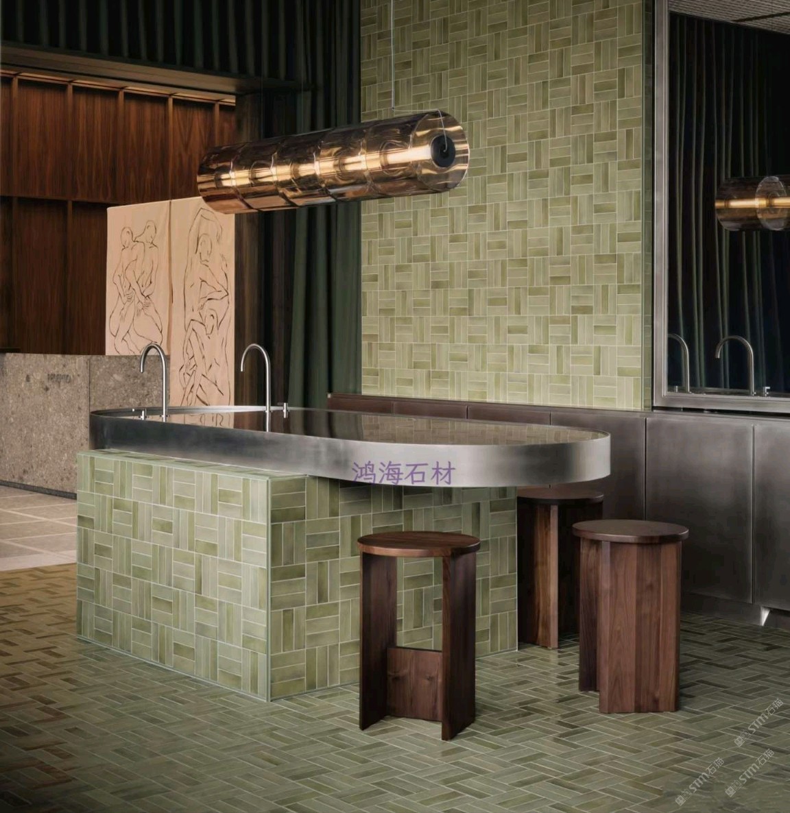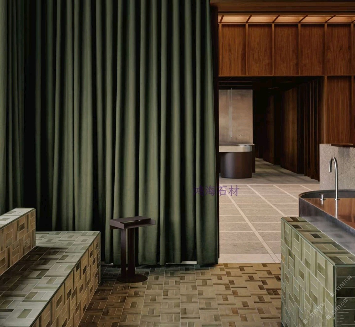 發(fā)布信息: 鴻海石材為皮膚科診所打造差異化空間,突破傳統(tǒng)醫(yī)療場(chǎng)所冰冷刻板的局限。設(shè)計(jì)融入金屬格柵與無(wú)機(jī)環(huán)氧水磨石等材質(zhì)形成呼應(yīng),滑動(dòng)穿孔面板實(shí)現(xiàn)醫(yī)療與咖啡休閑區(qū)的靈活切換,深綠窗簾、紅色絲絨座椅與綠色水磨石交錯(cuò)鋪貼,營(yíng)造出堪比高端水療中心的溫潤(rùn)療愈氛圍。