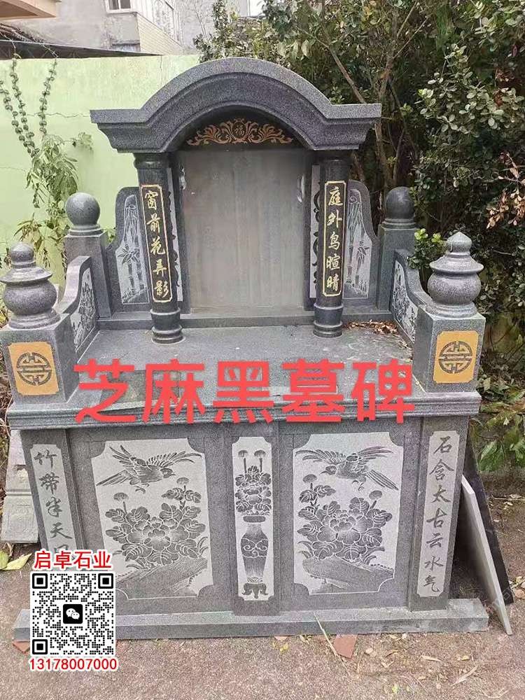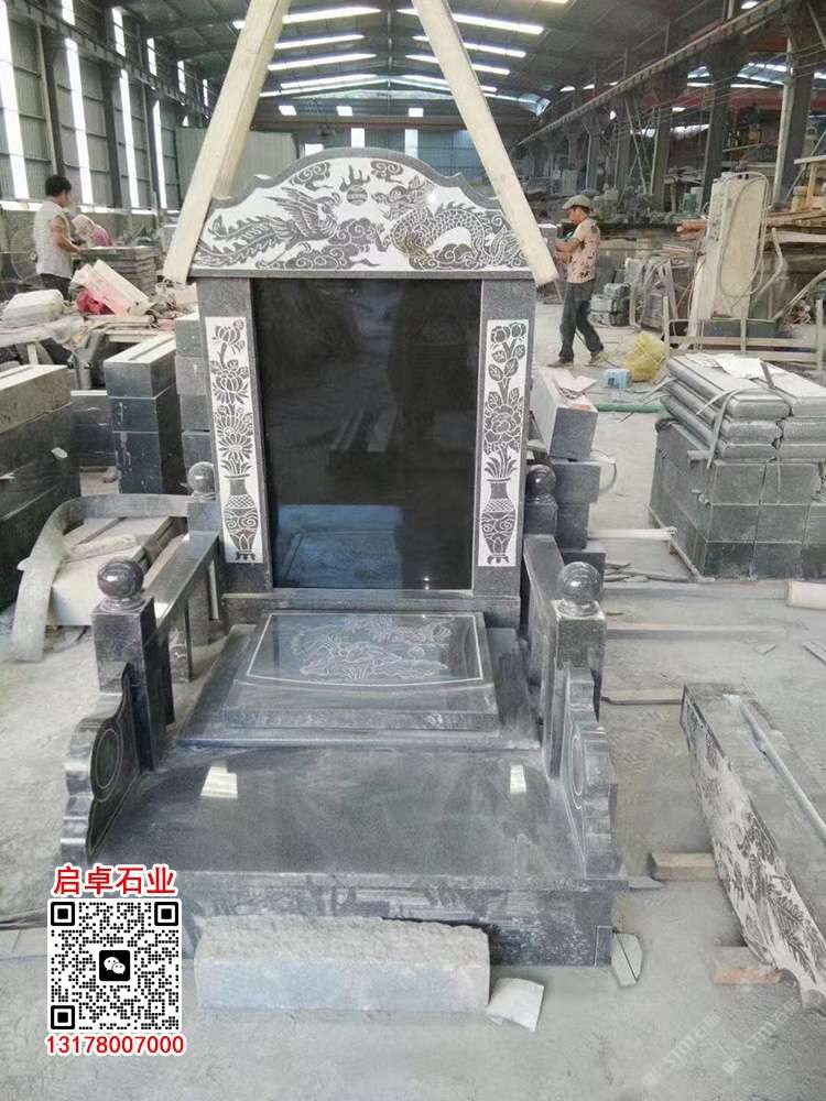 柬埔寨芝麻黑成品墓碑公墓墓碑套墓柬埔寨黑石中式墓碑