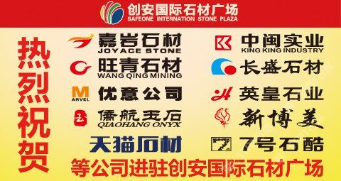 發(fā)布信息: 目前已進(jìn)駐嘉巖石材、僑航玉石、中閩石業(yè)、寶瀾礦業(yè)、英皇石業(yè)、優(yōu)意石業(yè)、新博美奇石、長(zhǎng)盛石業(yè)、華朗石業(yè)、7號(hào)石酷、廈門(mén)名基石業(yè)、煌茂石業(yè)、錦多石業(yè)、天貓石業(yè)、旺青石業(yè)、華州石業(yè)、楊輝石業(yè)、忠誠(chéng)石業(yè)、珍海石業(yè)、華富石業(yè)、萬(wàn)聯(lián)石業(yè)、博聞合眾石業(yè)、耐馳石業(yè)、金瑞華石業(yè)、溪石石業(yè)、鑫益源石業(yè)、粵銘石業(yè)、安東尼石業(yè)等30多家優(yōu)質(zhì)商家,二期位置已不多,歡迎大家搶定!聯(lián)系電話:29885555/13489248375