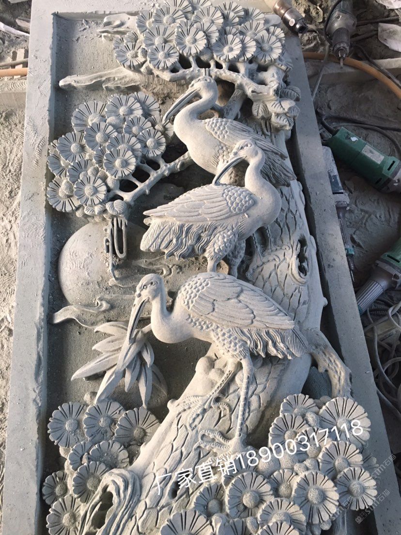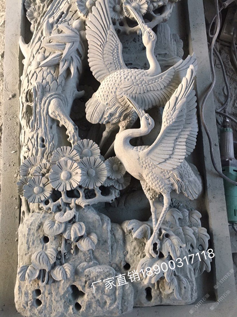 青石浮雕定制,石雕松鶴延年