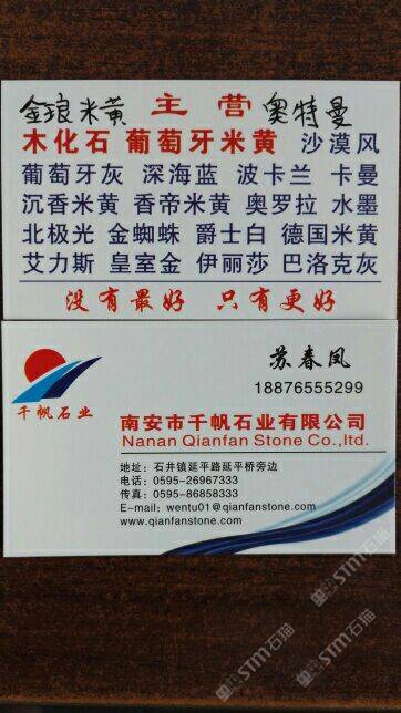 千帆石業(yè) 聯(lián)系人:鮑    188****5199 查看 188****5199 查看 主營范圍: 大板批發(fā)、荒料、大理石加工、石材交易市場、更多、異型加工、礦山、石材雕刻、 企業(yè)地址:福建泉州南安市石井鎮(zhèn)延平大道延平橋旁