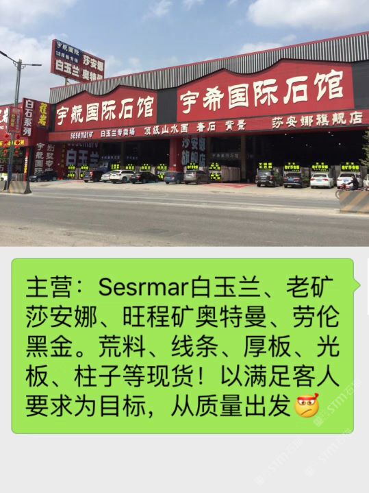 廣東云浮宇航國際石館 聯(lián)系人:梁燕鳳    135****1750 查看 手機號碼:無 主營范圍: 大板批發(fā)、荒料、礦山、 企業(yè)地址:廣東云浮云城區(qū)G324(福昆線)河口馬崗324國道邊宇航國際石館