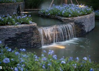 湖南長(zhǎng)沙流水板波浪板水景駁岸河卵石景觀墻