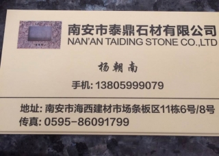 泰鼎石業(yè)主營產(chǎn)品:新莎莉士紅,石井銹(火燒面),黃金麻1,浪淘沙,啡鉆,浪淘沙(新礦),石井銹(光面),黃金麻4企業(yè)地址:福建南安水頭鎮(zhèn)海西石材城11棟6-8號
