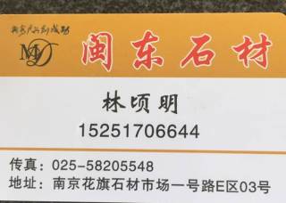江蘇省南京市閩東石材主營(yíng)產(chǎn)品:大白花(G439),潮州粉紅麻,芝麻白G365,芭拉白企業(yè)地址:江蘇南京南京市浦口區(qū)花旗石材市場(chǎng)一號(hào)路閩東石材