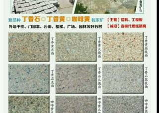 福建金湖石業(yè)主營(yíng)產(chǎn)品:丁香黃(光面),丁香黃(火燒面),丁香黃,丁香石,丁香石(光面),丁香石(火燒面),五彩紅,珍珠蘭(花崗巖),藍(lán)寶石企業(yè)地址:福建三明泰寧縣大龍鄉(xiāng)
