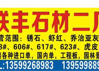 聯(lián)豐石材二廠主營產(chǎn)品:G681,銹石,G606(副礦),漳浦紅G648,漳浦蝦紅,黃銹石,古典灰麻,港尾銹石(荔枝面),港尾銹石(光面),漳浦銹(荔枝面),漳浦銹(火燒面),黃金鉆1,芝麻白G623,白麻企業(yè)地址:福建南安石井鎮(zhèn)聯(lián)豐埭頭高速橋旁。