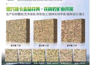 江西富磊石業(yè)有限公司主營產(chǎn)品:菊花黃(江西),新卡麥1,黃銹石,新卡麥,卡麥,黃金麻1,黃金麻2,黃金麻,黃金麻4,黃金麻3,新卡麥(內(nèi)蒙),內(nèi)蒙古新卡麥,卡麥金,卡麥(荔枝面),卡麥金(荔枝面),卡麥金黃,銹石1,銹石2,銹石,銹石3,白麻,卡拉麥里金,菊花黃,菊花黃3,菊花黃6企業(yè)地址:江西上饒德興市龍頭山鄉(xiāng)南溪程家