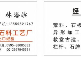 晉江市永和發(fā)德石料工藝廠主營(yíng)產(chǎn)品:芝麻白G603,芝麻黑654,漳浦青G612,G602,楓葉紅,G654,銹石,芝麻白G623,G633,G681蝦紅(光面),G664(荔枝面),G664(火燒面),羅源紅G664,G655(火燒面),G640,攀西蘭,意大利黑白根1,黑白根,內(nèi)蒙古新卡麥,新卡麥(內(nèi)蒙)企業(yè)地址:福建晉江永和鎮(zhèn)巴厝村發(fā)德石料工藝廠